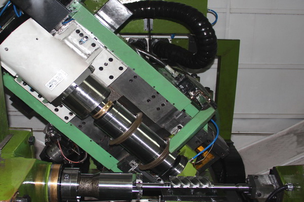 機床砂輪架上安裝有兩個CBN砂輪部件,分別完成轉(zhuǎn)子槽的粗/精磨削,砂輪架可沿軸向移動,使CBN砂輪移動至對應(yīng)的磨削工位。通過對工件的粗磨及精磨,是一種大幅提高螺桿/螺旋轉(zhuǎn)子工件齒型型線各項精度指標的先進工藝方式。